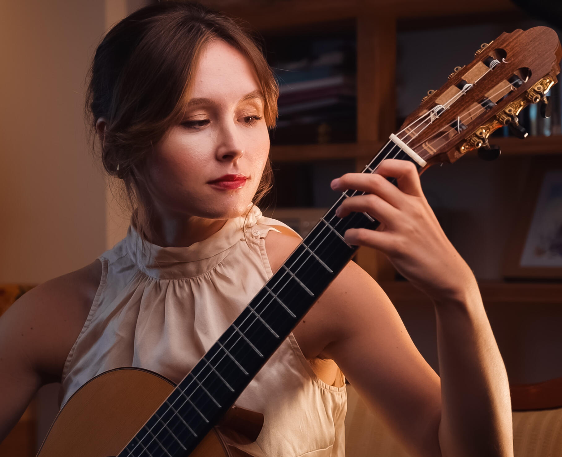 Today her YouTube channel and online courses help hundreds of students build confidence and joy in their guitar journey.